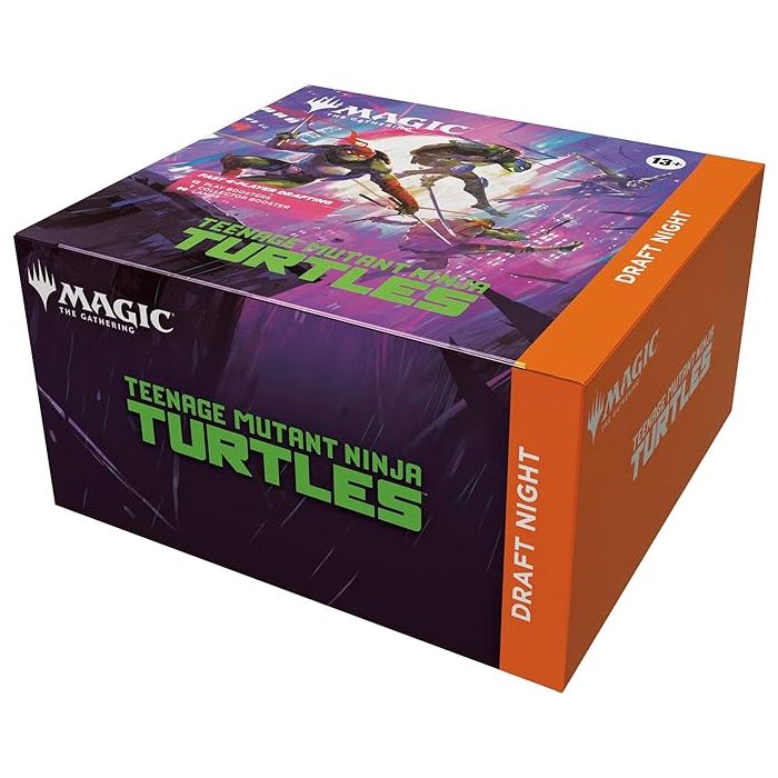 Draft Night: ¡Monta una fiesta de draft con esta caja! Draft Night es un kit completo para organizar una sesión de Draft de dos en dos para cuatro jugadores. Esta modalidad invita a hacer drafts rápidos y ágiles que son geniales para jugar en casa o añadirles una pizca de variedad a las noches de juegos. Además, ¡quien gane podrá coronarse con el sobre de coleccionista que incluye de Magic: The Gathering Teenage Mutant Ninja Turtles! (o puedes quedártelo tú, no vamos a juzgarte por ello).