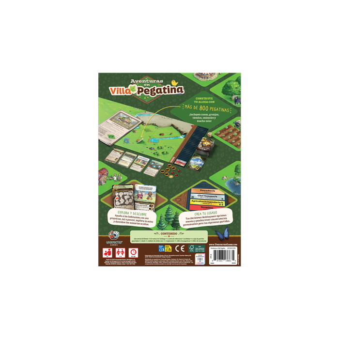 En 'Aventuras en Villa Pegatina', cada jugador asume un rol en la construcción de una aldea. A lo largo de 10 años, deberéis tomar decisiones conjuntas que influirán en el desarrollo de vuestra comunidad. Explorad, ayudad a los habitantes, pescando, explorando la mina y descubriendo misterios ocultos. Vuestras acciones desbloquearán nuevas posibilidades y dejarán una huella permanente en la aldea. El juego combina la exploración, la gestión de recursos y la narrativa para ofrecer una experiencia de juego rica y dinámica.