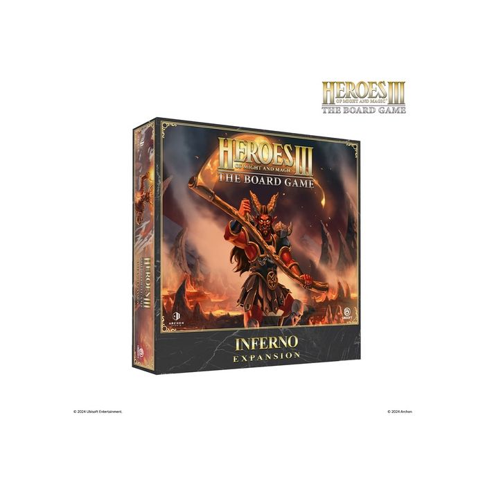 Incluye: libro de misiones, fichas de mapa, 2 miniaturas de héroe, 1 maqueta de ciudad, 7 miniaturas de unidades Inferno, tablero de ciudad, cartas de héroe, cartas y fichas varias, cubos acrílicos.