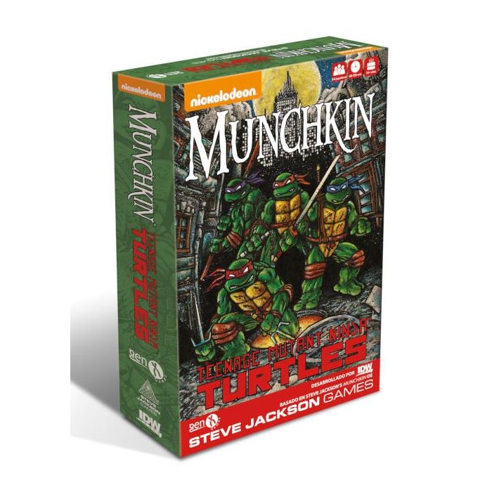Lánzate junto a Leonardo, Donatello, Michelangelo y Raphael en una misión para combatir el mal en las alcantarillas de Nueva York. Munchkin: Teenage Mutant Ninja Turtles combina el clásico juego de mazmorreo con el estilo único de las Tortugas Ninja. ¡Desarrolla tus katas y alcanza el nivel 10 antes que tus hermanos!